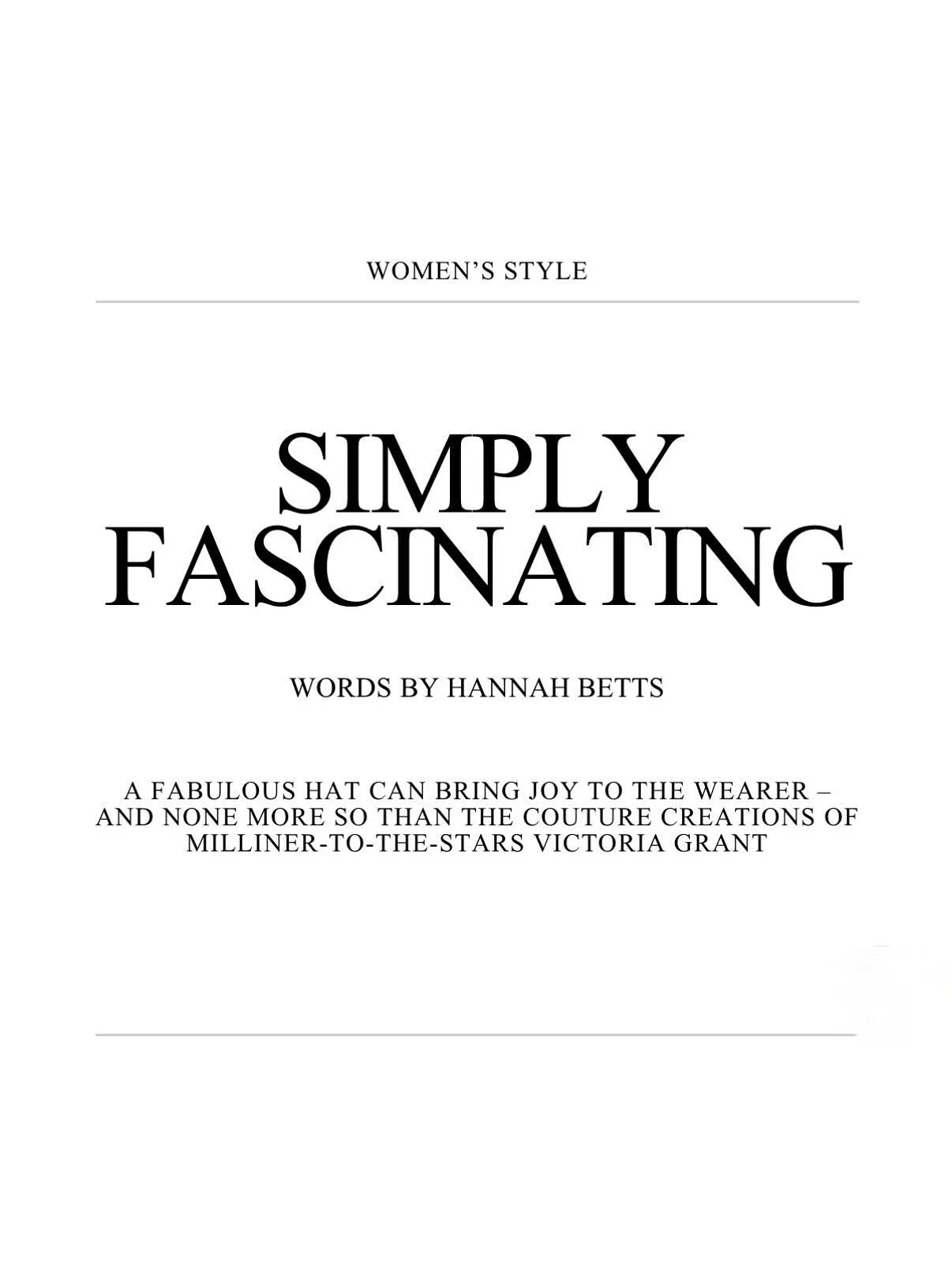 At Victoria Grant we create Bespoke millinery for special occasions and stylish individuals. From Red Carpet events to Royal Ascot, Weddings, Parties and Royal Affairs, Visit our Notting Hill Atelier to view our full range and for Bespoke consultations with Victoria, by Appointment: +44 (0) 207 221 1395